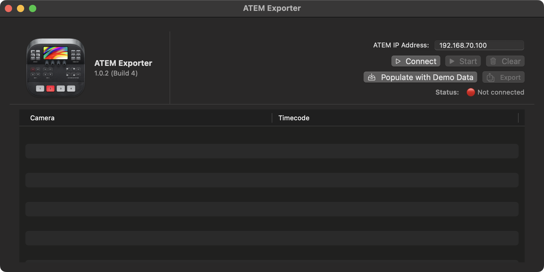 For those that don't have access to an ATEM (like myself), there's also a Populate with Demo Data button that fills the table with real-world data from an actual live event: